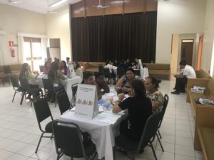 Carga horária: 8 horas – duas aulas teóricas em flip-charts e quatro aulas práticas. Público: . Parteiras tradicionais. Objetivo: . Treinar parteiras tradicionais que atendem ao recém-nascido em partos domiciliares